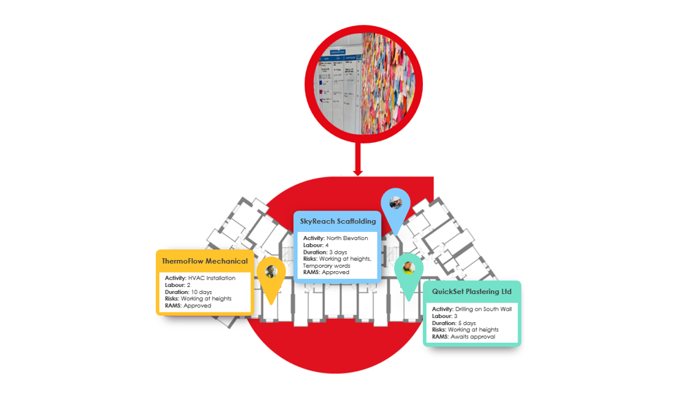 Interactive site maps show all planned activities, risks, and resourcing in one place. Potential clashes are flagged early. Issues are resolved before they become delays. This means less rework, fewer stoppages and a safer site.